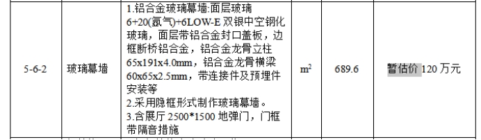 5-6-2 玻璃幕墙,单位:项,工程量:1,金额:101500元。